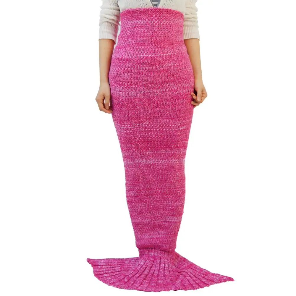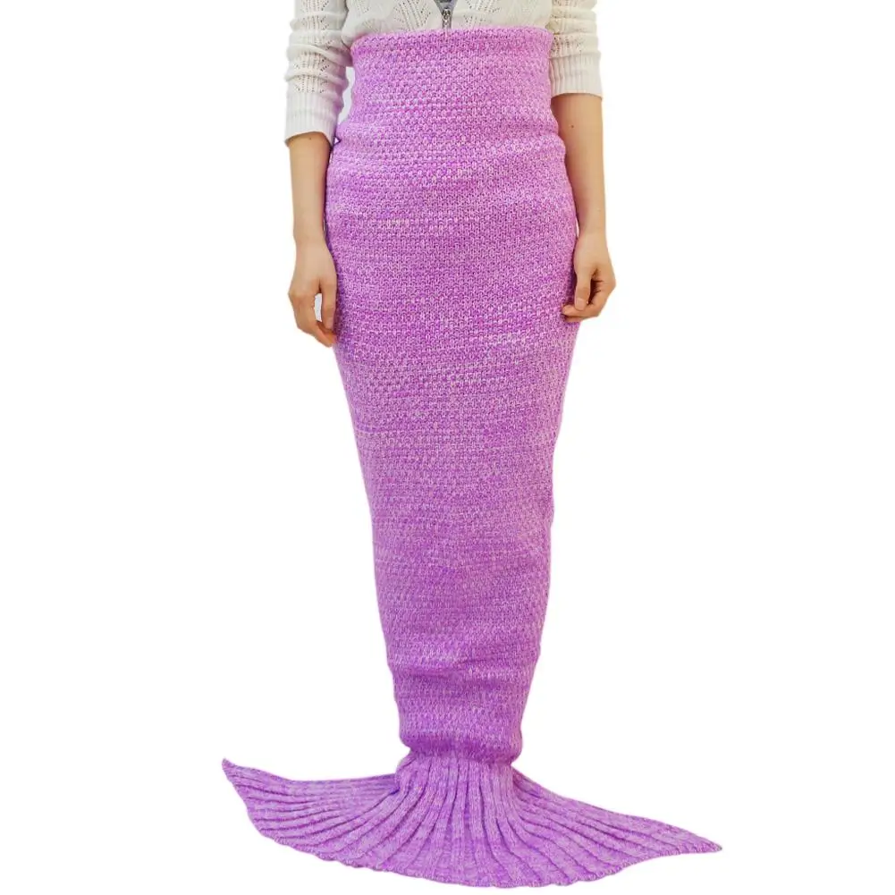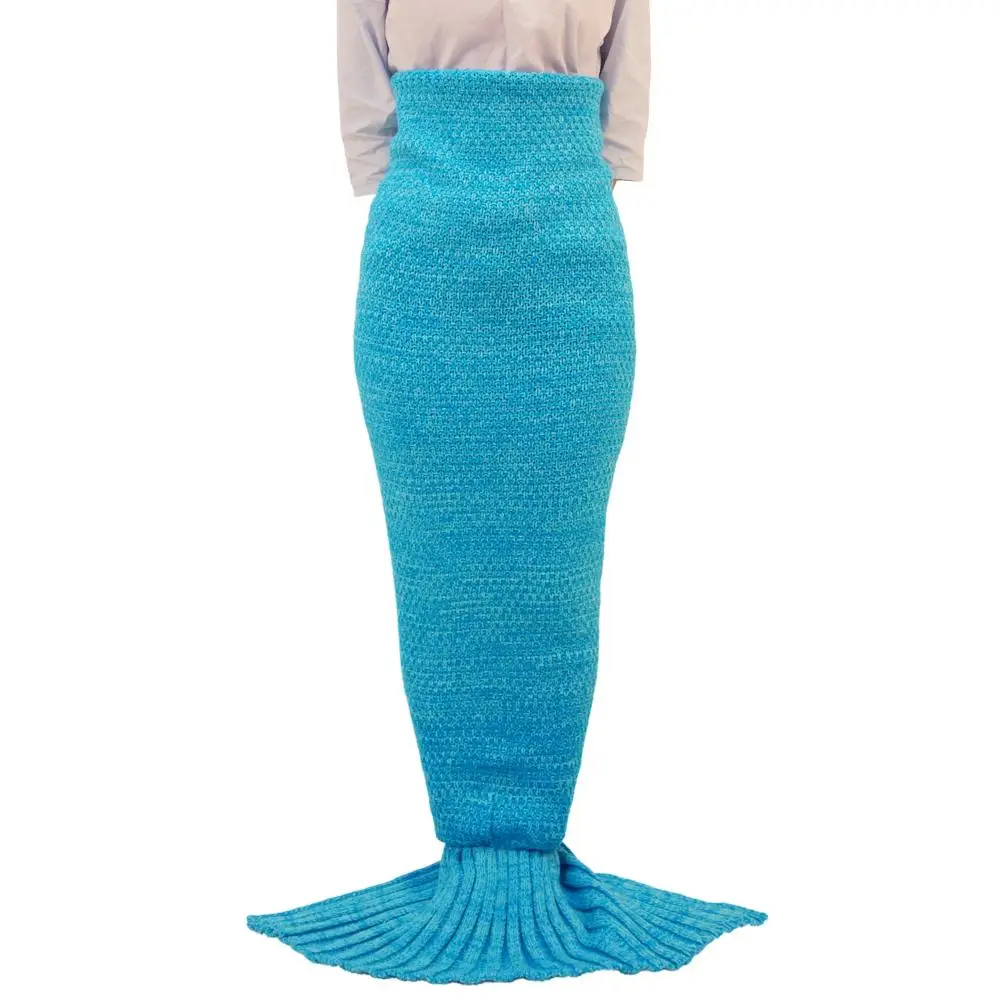 Knitted Mermaid Tail Blanket Handmade Crochet Children Throw Bed Wrap Sleeping Bag