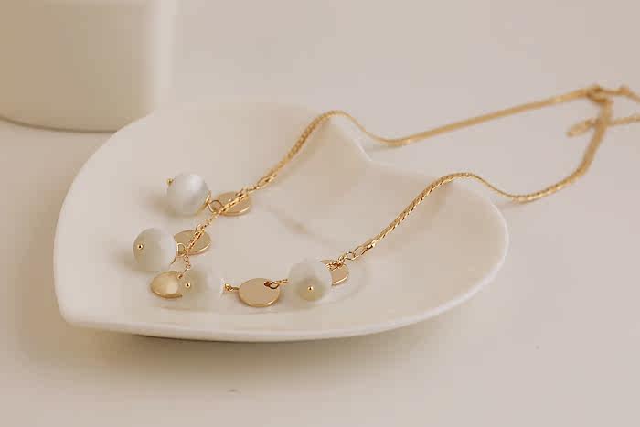 Material: three layer vacuum plating 14 K / super color retention cat's eye stone