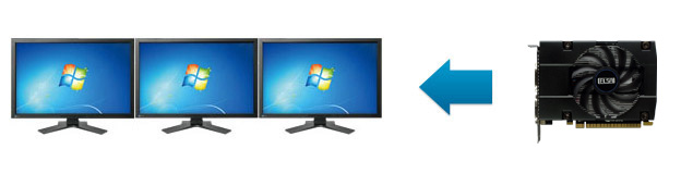 DVI-I、DVI-D、MiniHDMIの3系統の出力ポートを搭載し、最大で3画面の同時出力が可能です。