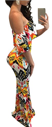 This lightweight long maxi dress made from 100% Polyester elastic material. Featured as ruffle plain,floral printed, off shoulder, great for most occasions from party to daily life! Basic information: Material: Elastic