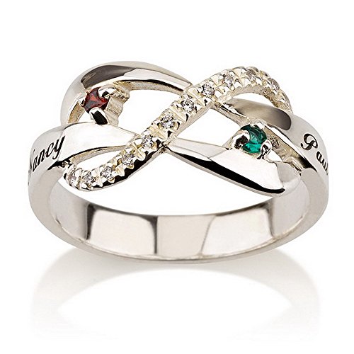 -. Feature : Engraved Sterling Silver Infinity ring with two Swarovski Birthstones choose any color / Choose stone color from the attached chart. / Next, find this item in your Shopping Cart and select "Gift Options" / Type the stone color, the words that you want Engraved in the Gift Note box / Please choose Ring size: 5,5.5,6,6.5,7,7.5,8,8.5,9