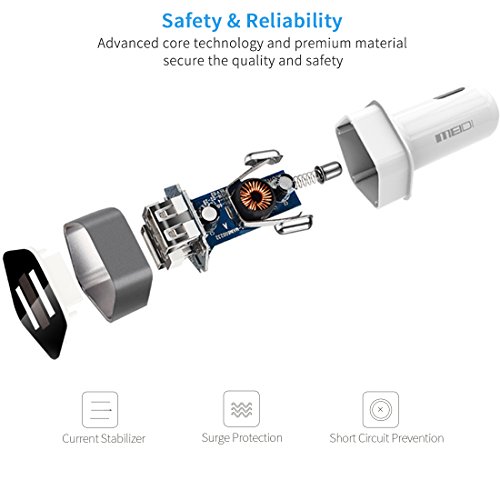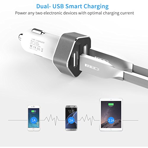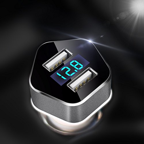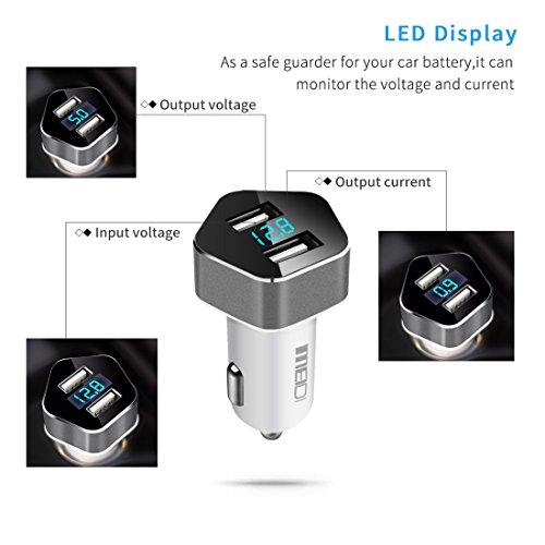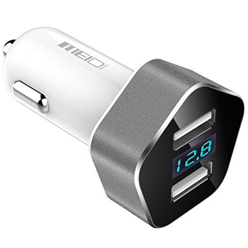 MEIDI Dual USB Car Charger, 2.4A Fast Charging Ports Voltage LED Display for iPhone 7/7s/6/6s Plus, iPad, Samsung and More (Grey)