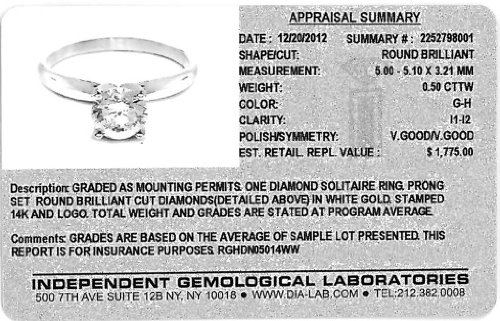 -. Feature : Made in USA / 100% Conflict Free Natural Diamonds / Solid 14K White Gold / 0.50 Carat Diamond / I1-I2 Clarity