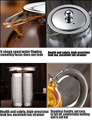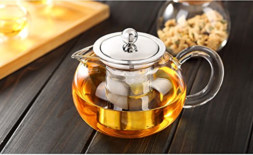 Fullthings 내열 유리 티 포트 스테인레스 필터 화이트3-4명 용500ml