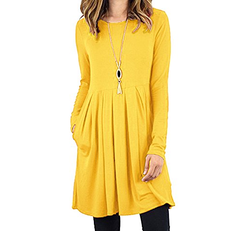 -. Title : Fanfly Women's Pleated Swing Dress Long Sleeve Casual T Shirt Dress With Pockets