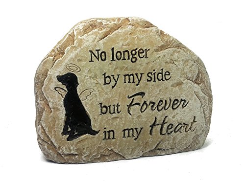 Dog Memorial Stone "No Longer By My Side But Forever in My Heart" with Dog Angel, Indoor or Outdoor (Tan)