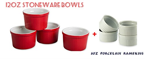 (BIA Cordon Bleu)/Kitchen Dining/Cookware Baking/DIRECT FROM USA/BIA Cordon Bleu (Set of 4) - 12 oz. Porcelain Ramekins Bowls 12 ounce (Red) (Set of 4) - 8 oz...