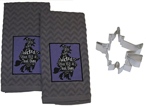 Witch You Say Wicked Like It's a Bad Thing Dish Towels and Cookie Cutter Kitchen Bundle Set (3 Items)