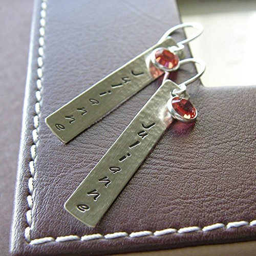 -. Title : 1.5 Inch Textured Bar Earrings Custom Hand Stamped Sterling Silver Personalized Jewelry with Birthstone Drops