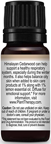 -. Feature : Botanical Name: Cedrus deodora / Aromatic Scent: Cedarwood Himalayan has a dry woody aroma, slightly camphoraceous, smoky, balsamic, very subtle with a hint of spice / 100% Certified Pure Therapeutic Grade Essential Oil- no fillers, additives, bases or carriers added / Have Questions? Message one of our Certified Aromatherapist through Amazon messages / At Plant Therapy we also have some other selections you may be interested in. Includes: Basil, Bergamot, Cajeput, Carrot, Cedarwood, Chamomile, Cinnamon, Citronella, Clary Sage, Clove, Cypress, Eucalyptus, Fir, Frankincense, Garlic, Germanium, Ginger, Grapefruit, Helichrysum, Lavender, Lemon, Lime, Mandarin, Marjoram, Myrrh, Neroli, Naiouli, Nutmeg, Orange, Oregano, Patchouli, Peppermint, Pine, Rosemary, Spearmint, Tangerine, Tea Tree, Thyme, Vetiver, Vanilla, Wintergreen, Ylang Ylang.
