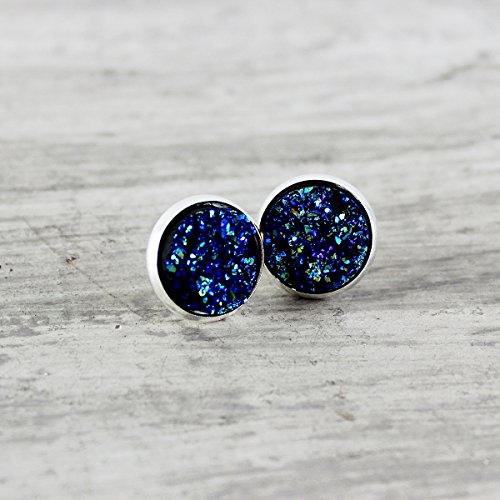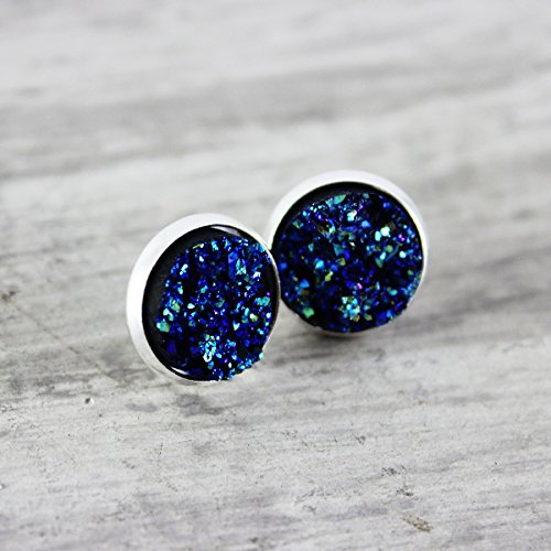 -. Title : Metallic Blue Faux Druzy Stud Earrings