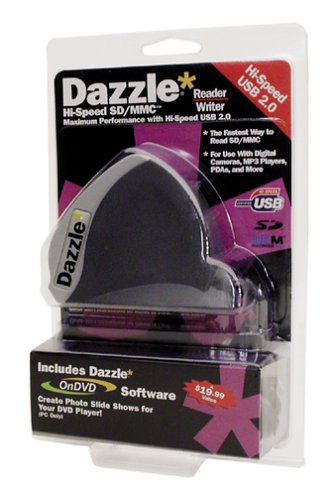 The Dazzle DM-22200 is the essential companion piece to any digital camera or other portable device using SD ( Secure Digital ) or MMC ( MultiMedia Card) removable cards. Connection and use couldn't be simpler: connect the Reader to your computer's USB 2.0 or 1.1 port, insert the card, and start moving data rapidly from the card to computer. OS Compatibility - Windows 98SE, 2000, ME, XP, or Mac OS 9.x or higher Note - For full speed benefit, your computer must be fitted with a USB 2.0 interface