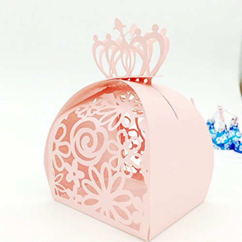 50 Pcs - Crown Lock Flower Style Hollow Laser Cut Roses Flowers Wedding Candy Box Chocolate Candy Holders Party Favors for Bridal Shower,Wedding,Party,Birthday Gift (Pink)