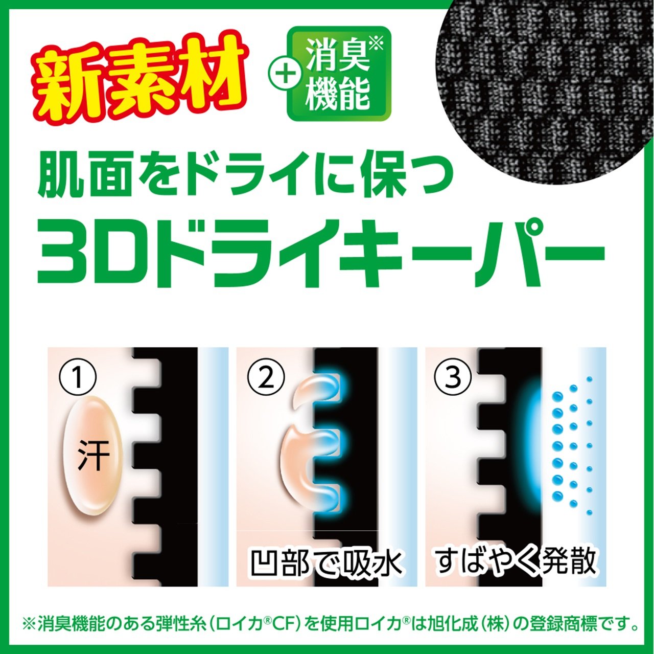 Keep dry on the skin surface, adopting 3D dry keeper, we are pursuing comfort.