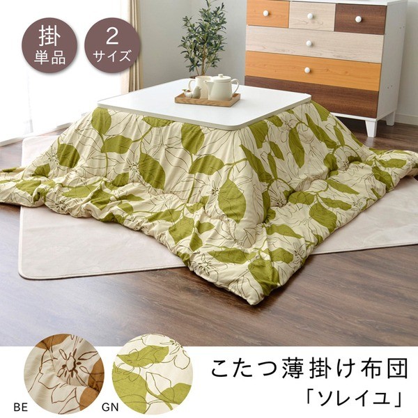 【商品名】こたつ布団 正方形 掛け単品 洗える リーフ柄 『ソレイユ』 グリーン 約190×190cm