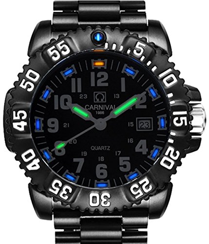 -. Binding : Watch -. Brand : MASTOP -. Color : Black -. Department : Mens -. EAN : 0601209962108 -. Feature : Luminous black watch featuring notched unidirectional bezel, contrast white markers, and date display at 3 o'clock position / 44 mm stainless steel case with sapphire dial window / Swiss quartz movement with analog display / Polyurethane band with embossed logo and buckle closure / Water resistant to 30M -. Label : MASTOP -. Manufacturer : MASTOP -. Model : 8477G-B -. MPN : JA5004 -. PackageQuantity : 1 -. PartNumber : JA5004 -. ProductGroup : Watch -. ProductTypeName : WATCH -. Publisher : MASTOP -. Studio : MASTOP -. Title : Men's Swiss Tritium Luminous Sports Watches H3 Quartz Army Black Dial Rotatable Bezel Sports WristWatch -. UPC : 601209962108