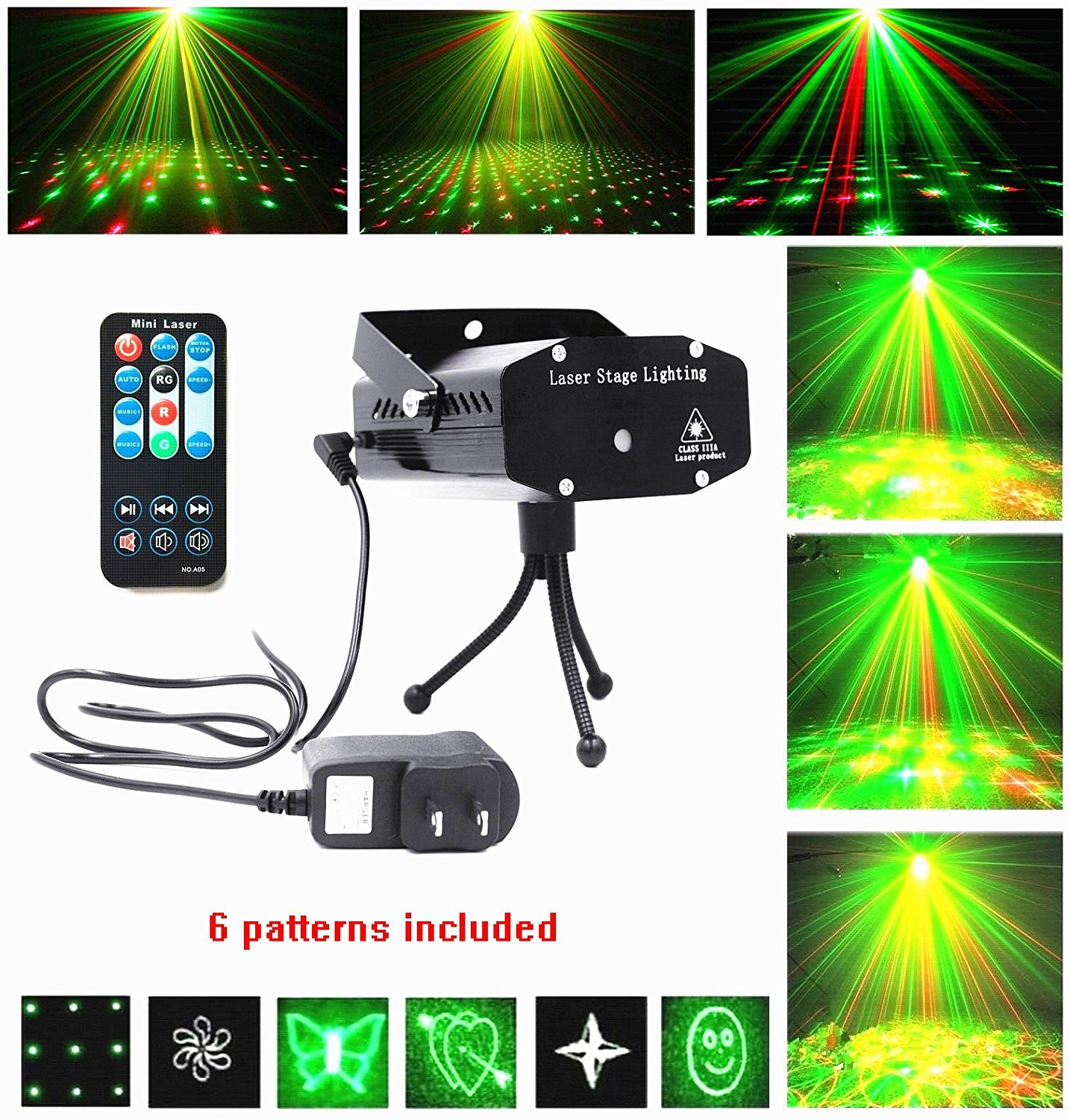 Sound active mode (reacting to sound), speed adjustment, designation of color Product content Body, remote control, tripod, AC adapter, instruction manual