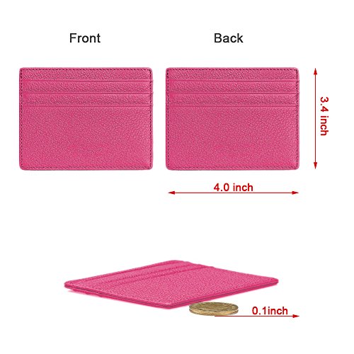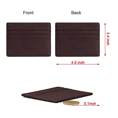 -. Feature : MADE FROM GENUINE PREMIUM LEATHER. This super slim card sleeve is made from premium genuine leather, durable and stylish. Comfortable to use for carrying your most frequently used cards and some bills. / ULTRA SLIM FRONT POCKET WALLET. This leather card sleeve is designed to be slim and feels amazingly soft. Sturdy enough to last a long time, its super slim figure (only 0.3 cm/0.1 inches thickness) makes it easy to slide into your front pocket. It is super thin, fits perfect in your pocket and can hold at least 6 cards and some folded cash comfortably. / LIGHTWEIGHT BUT HUGE STORAGE CAPACITY. Three card slots on each side where you can put 1-2 cards into each card slot, also with a middle compartment you can put notes, receipts or some folded cash. Great fit for business cards. Wallet Size: 4"x 3.4"x 0.1". / MINIMALIST WALLET DESIGNED FOR PRACTICALITY. The slim front pocket wallet is light in weight (0.9oz only) , perfect for a night out tucked away almost invisibly in your pocket and it won't look like that you are bring a brick when you are bringing all the necessary. / VARIOUSLY COLOR CHOICE. We offer several colors for you to choose, no matter you are a elegant lady or a gentleman, you will find the right color to fit your style. Whether you wear jeans, shorts, or slacks, it fits perfectly in front or back pocket without being noticed.