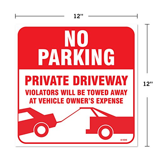 No Parking Sign - Private Driveway Violators Will Be Towed Away At Vehicle Owners Expense, Large 12x12" Inch Vinyl Sticker, Indoor and Outdoor Use, Rust Free, UV Protected, Waterproof, Self Adhesive