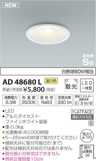 ●幅-φ110 出幅-3 埋込穴径-φ100 埋込高-36 取付必要高-36mm 重-0.3kg