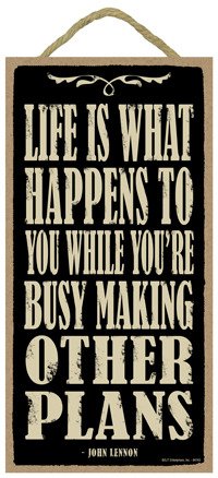 (SJT94163) Life is what happens to you while you're busy making other plans - John Lennon 5" x 10" wood sign plaque