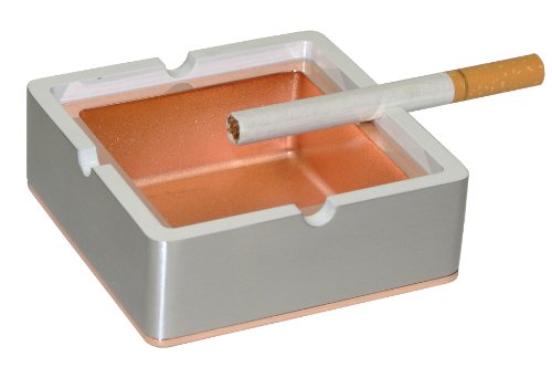 -. Feature : Four Cigarette Rests for Smoking Convenience / Premium Quality Brushed Finish Stainless Steel Body with Copper Finished Interior / Perfect for a Desktop or Small Table and Fits Inside a Desk Drawer / Easily Cleaned in a Dish Washer / Sturdy, Solid and Reliable Square Design