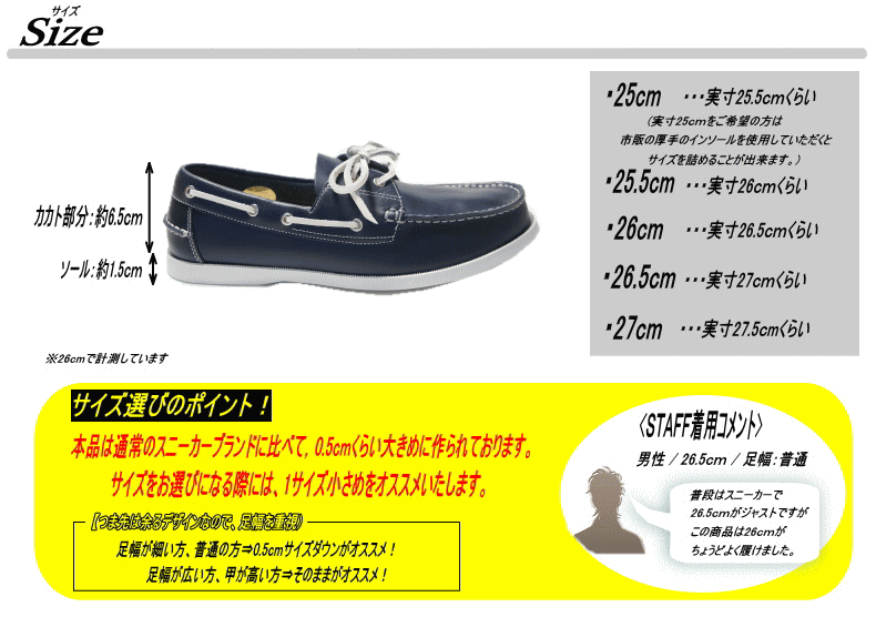 | サイズ | 作り⇒少し大きめ 【サイズ選びのポイント!】 足幅が細い方、普通の方⇒0.5cmくらいサイズダウンがオススメ! 足幅が広い方、甲が高い方⇒そのままくらいのサイズがオススメ! ▼ご確認下さい!▼ 本品は通常のスニーカーブランドに比べて,0.5cmくらい大きめに作られております。サイズをお選びになる際には,0.5cmくらいのサイズダウンをオススメいたします。 |