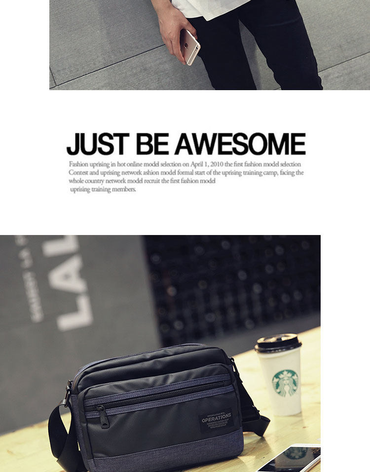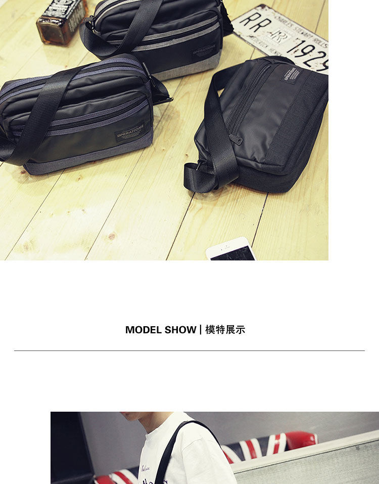 款式材质:包包采用防水料拼接帆布制成,简约实用版型