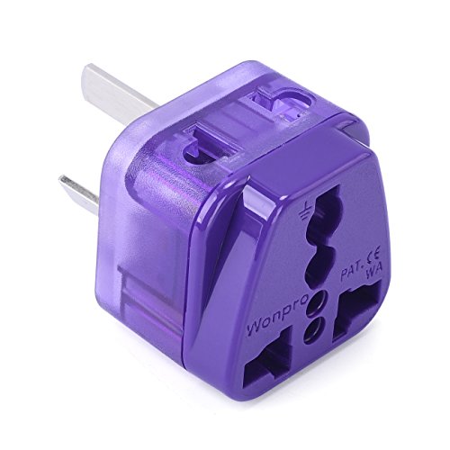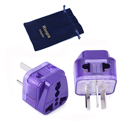 Wonpro Grounded 2 in 1 Travel Plug Adapter Type I for Argentina, New Zealand, China, Australia - CE Certified - 2 Pack