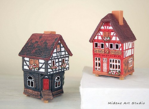 Handmade Midene ceramic miniatures 'Houses in Lauterbach' S19-4+S19-6