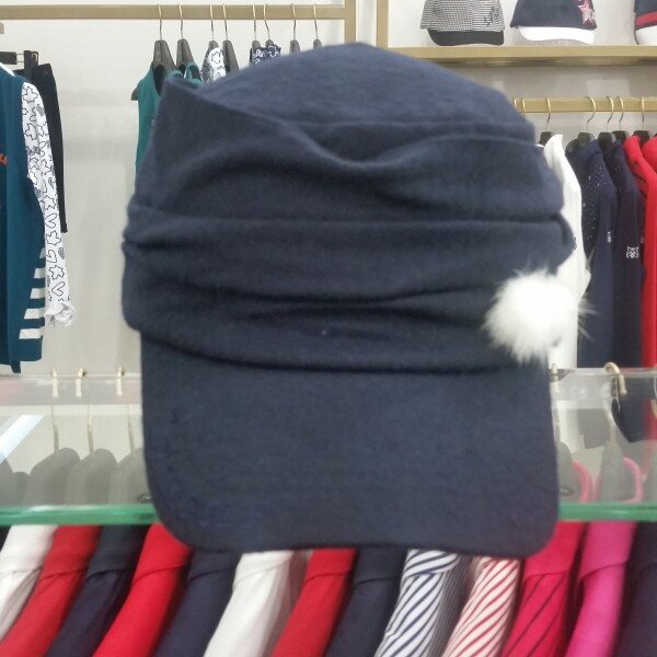 전판 화이트폼폼이 포인트.전체주름으로 착용감이좋은 모자입니다.
