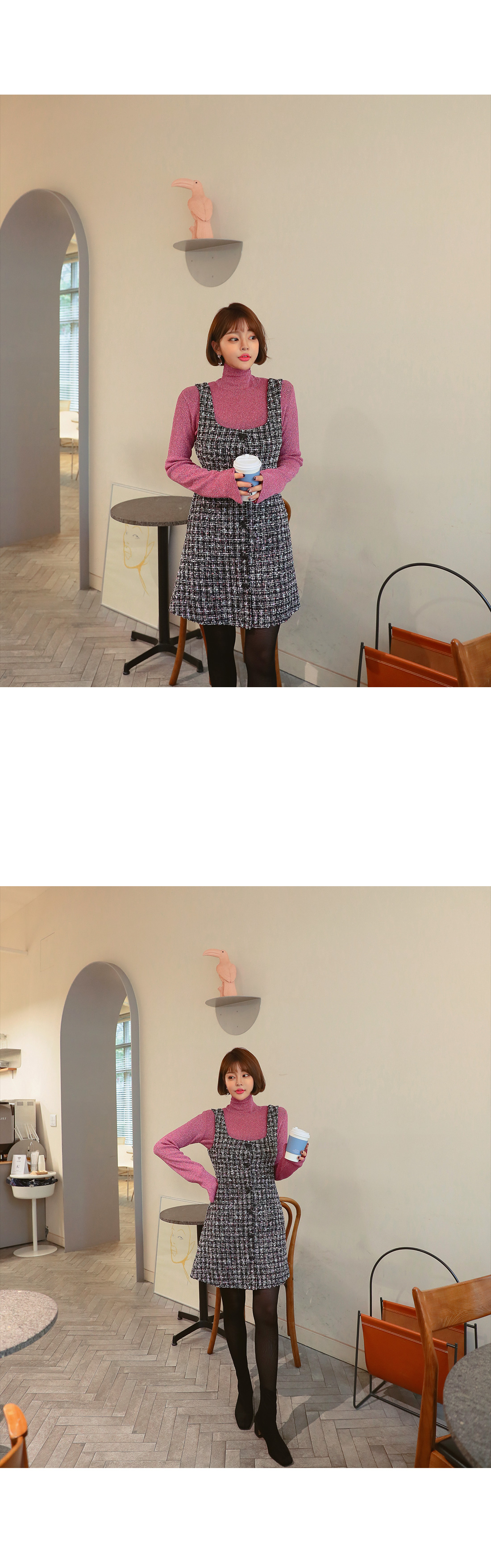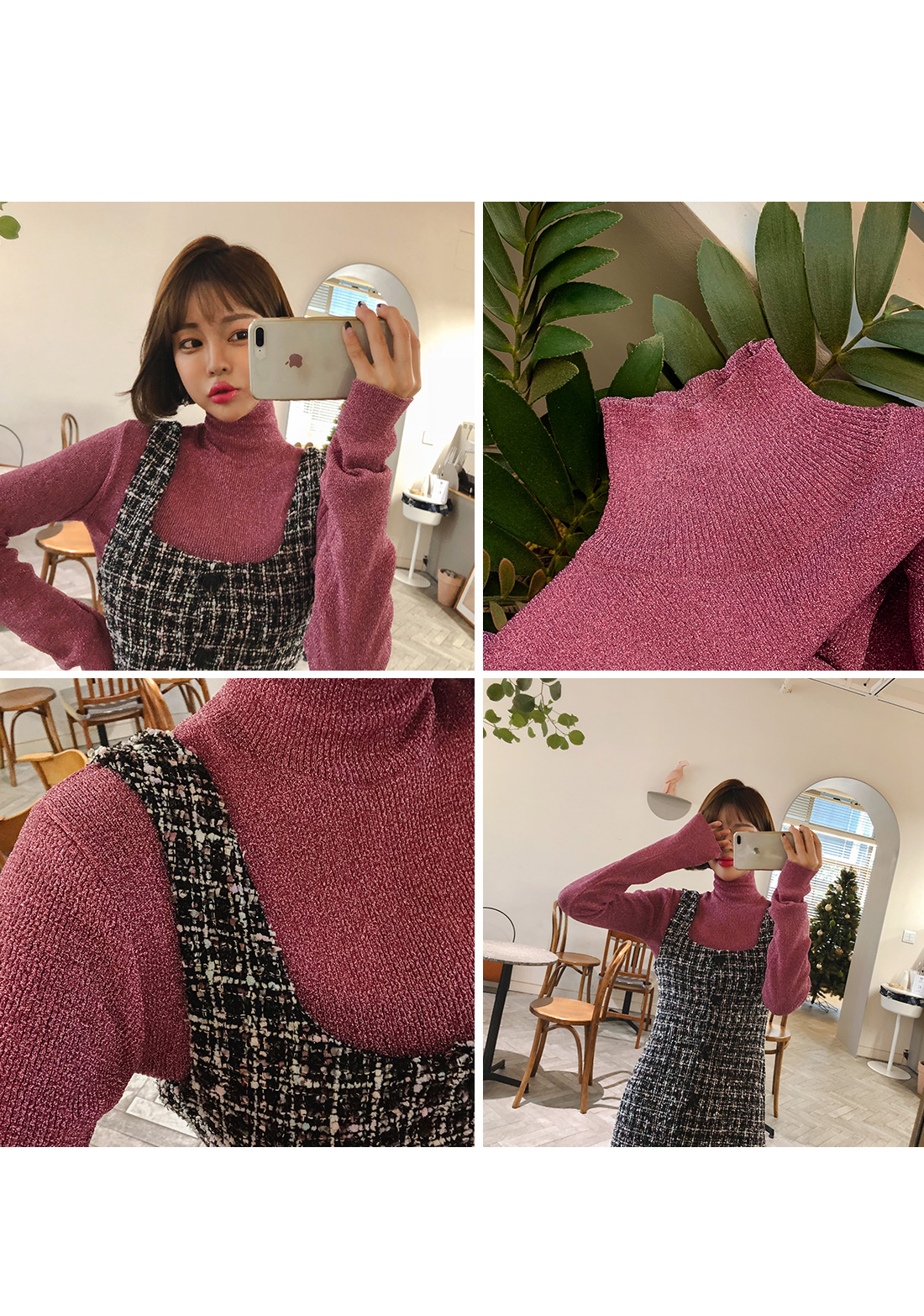 MD COMMENT 파티룩으로 활용가능한 반짝이 반폴라티를 소개해드려요-!블링블링한 소재감으로 연말파티룩으로추천드리는 아이템이에요. 촘촘한 골지소재로 신축성이 좋아 편안하게 착용 가능한 제품이랍니다.군더더기 없이 깔끔하게 떨어지는 라인으로 단독 착용은 물론 레이어드해서 착용하시면 또 다른 느낌을 느끼실 수 있어요.봄,가을,겨울 착용가능한 두께감으로 두고두고 입기 좋은 아이템이구요. 다가오는 연말에 은은한 포인트를 주고 싶다면 추천드려요-! 소장가치 100% 랍니다-!COLOR/SIZE 핑크,골드,블랙FREEMODEL FITTING 핑크/FREE