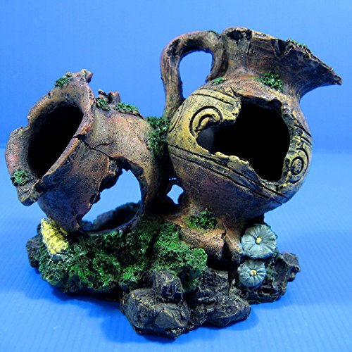 -. Title : Double Vase Urn Cave 6.3" Aquarium Ornament Decor - Jiuweng bonsai aquatic Greek