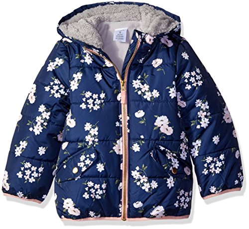 Carter's Little Girls' Toddler Classic Heavyweight Puffer, Navy Floral, 3T