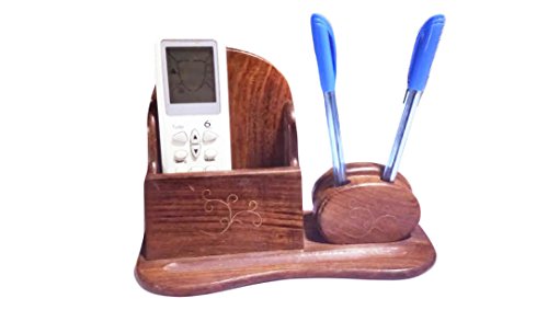 Valentine Day Special Gift, Wooden Mobile Cum Pen Stand Inlay Work, Mobile Cum Pen Stand For Desk, Mobile Cum Pen Stand For Office, Personalized Mobile Cum Pen Holder, Brown Color Size 8 X 5.5