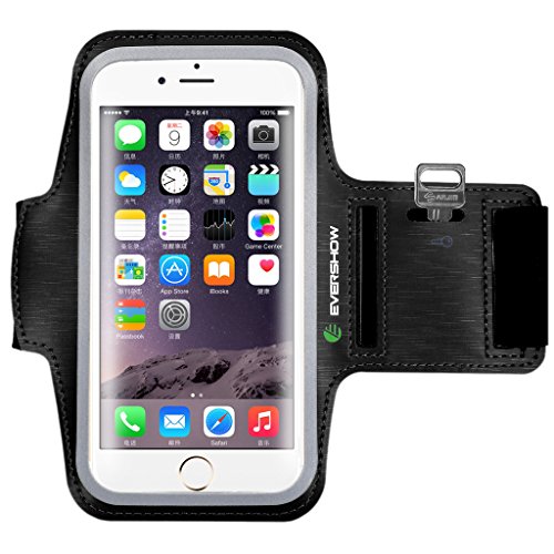 Evershow Water Resistant Sports Armband for iPhone 7/7 Plus/6/6S Plus (5.5-Inch), Galaxy S6/S7 Edge, S8/S8 plus, Note 5, with Key Holder/ Flap | Night Reflective Running Exercise Armband (Black)