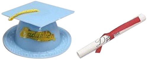 Oasis Supply Graduation Cap Cake Topper with Diploma, Light Blue