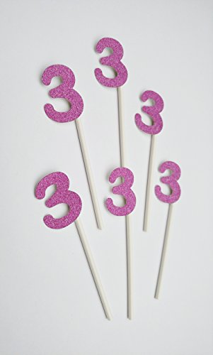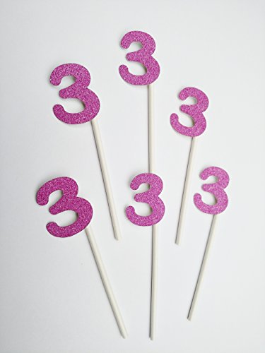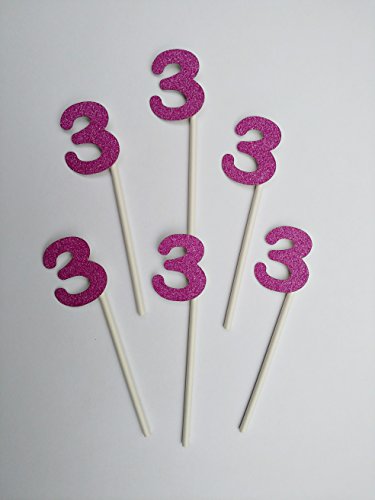 3rd Birthday Cupcake Toppers in Pink Glitter (20 count) - Third Retirement Milestone Anniversary 3 Three Girl Birthday Party