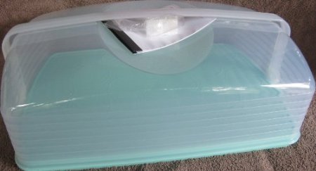 Product DescriptionTupperware New Rectangle Cake Taker, Sheer with Mint Base0