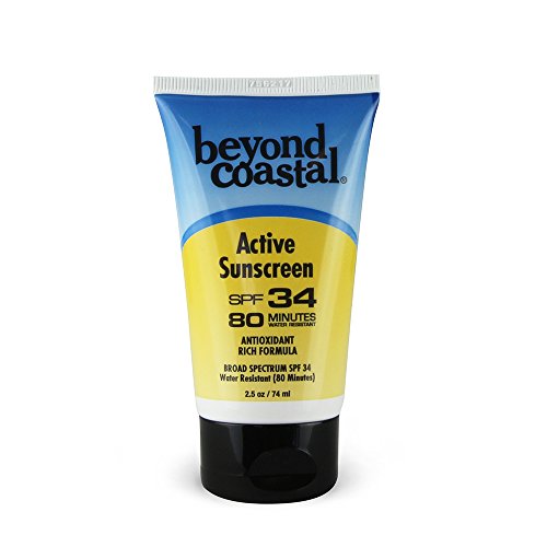 Our traditional sport sunscreen provides shelter from UVA rays with Avobenzone. SPF 34 effectively blocks 97 Percent of UVB rays, which cause sunburn. This ultimate skin care for the outdoor athlete is moisturizing, water resistant, and rubs in clear. Our inactive ingredients aren't just empty filler. Beyond Coastal's Active sunscreens nourish, repair, and hydrate your skin with aloe vera, shea butter, and vitamins C and E.Feature