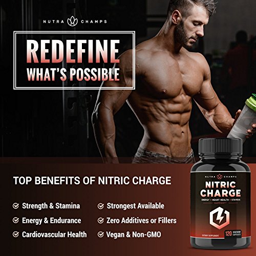 Studio : NutraChamps Inc. Publisher : NutraChamps Inc. Binding : Health and Beauty Product Description Nitric Charge is a scientifically crafted nitric oxide booster designed to increase blood flow to the muscles and maximize your pump. Nitric Charge's explosive energy, endurance, and strength benefits will help you take your workout to the next level and power through plateaus to achieve your best results, every time. 0