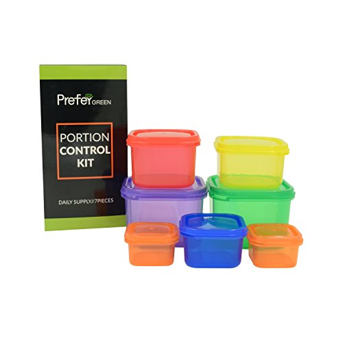 Prefer Green 7 Piece Portion Control Containers with Guide Instruction,Food and Meal Storage,100% Leak Proof,Comparable to 21 Day Fix