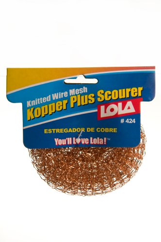 Studio : Lola Products Publisher : Lola Products Binding : Kitchen Product Description This copper coated knitted flat wire mesh scourer is heavy duty for tough jobs. It is odor resistant. Be sure to rinse pad clean after each use, and rest on a towel or sponge rest (Do not rest directly on the countertop or in the sink). 0