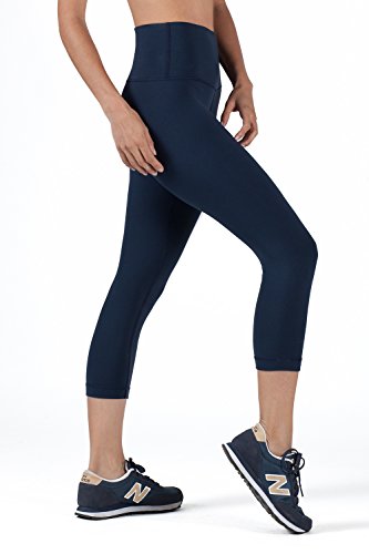 WITH WOMEN'S SOLID HIGH WAISTED CAPRIS DARK NAVY