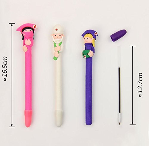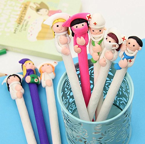 BestGrew 10pcs Doctor and Nurse Polymer Caly Ball Point Pens Cute Novelty Lovely Cartoon for Writing Stationery School Office Supplies