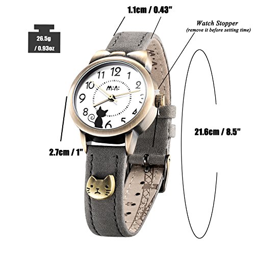 UNIQUE DESIGN - Cute appearance,beautiful tower and flowers carved strap,adorable pussycat sit on watch dail,match bronze color bow knot(cat ears)case,retro style
