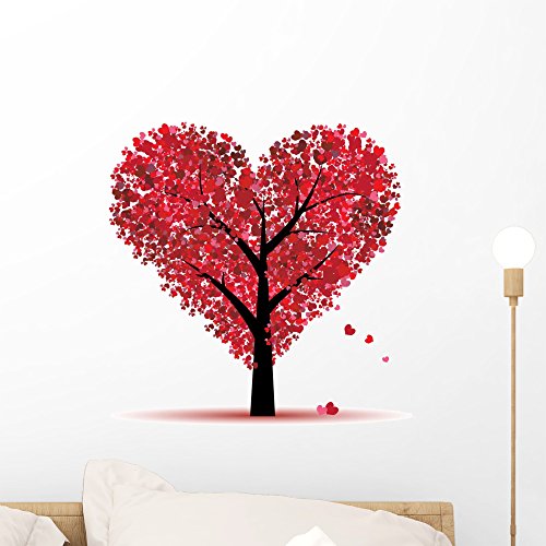 Wallmonkeys Valentine Tree Love Leaf from Hearts Peel and Stick Wall Decals WM46370 (18 in H x 18 in W)