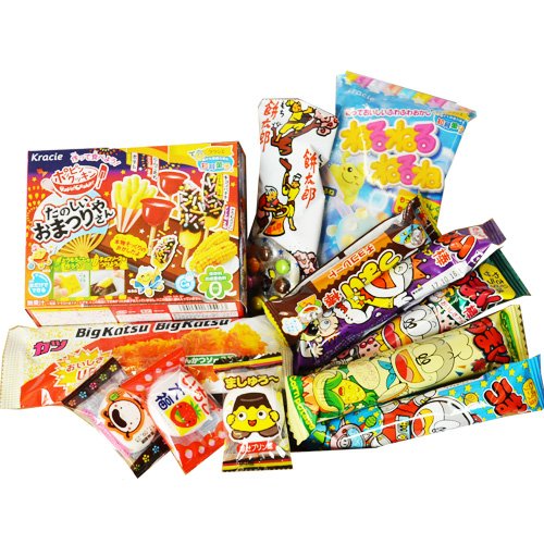 -. Title : Japanese Candy Popin Cookin Dagashi Box 14pcs Umaibo Snack Gumi potato Chip Kitty chocolate w/ AKIBA KING Sticker