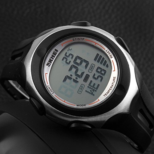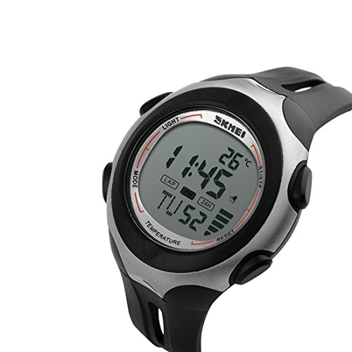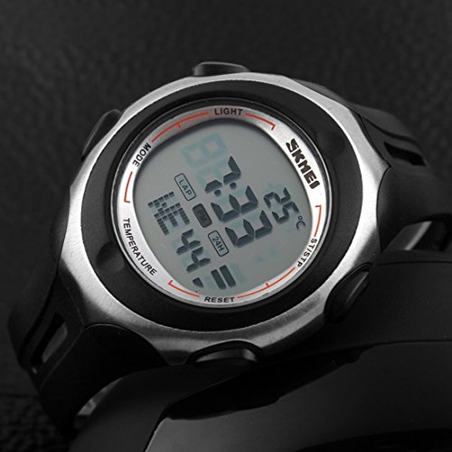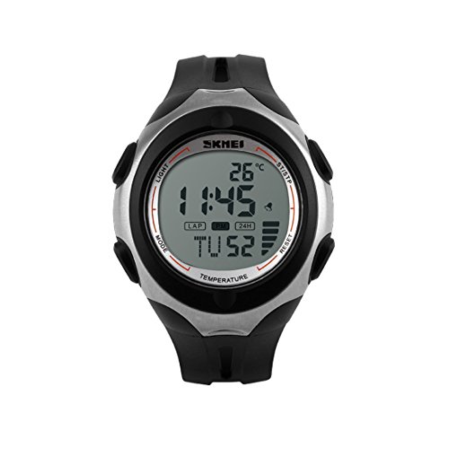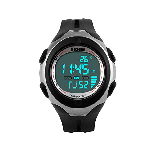 "The product description:Famous fashion brand, high quality Japan original movement, boy's LCD digital multifunctional wristwatch;5ATM dive waterproof, high brightness pervious to light glass, fashion LCD display design;Style: outdoor sports, military, casual fashion, suitable for boys and teenagers;Function: thermometer, alarm, stopwatch, calendar, luminous, 5ATM waterproof;This watch has the function of test the atmospheric temperature, if you want to test the atmospheric temperature, you need to let the watch leave your wrist about half an hour, and it will be able to show that atmospheric temperature. "Feature