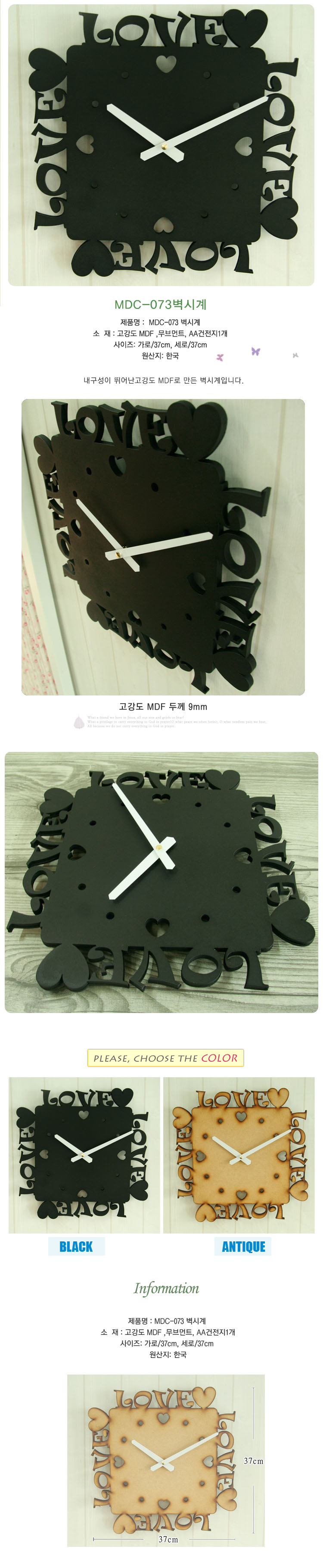 INFO Material : high-solidity MDF, Movement Size : 37cm x 37cm x 0.9cm Contents : Clock, AA Battery 1ea Origin : Korea